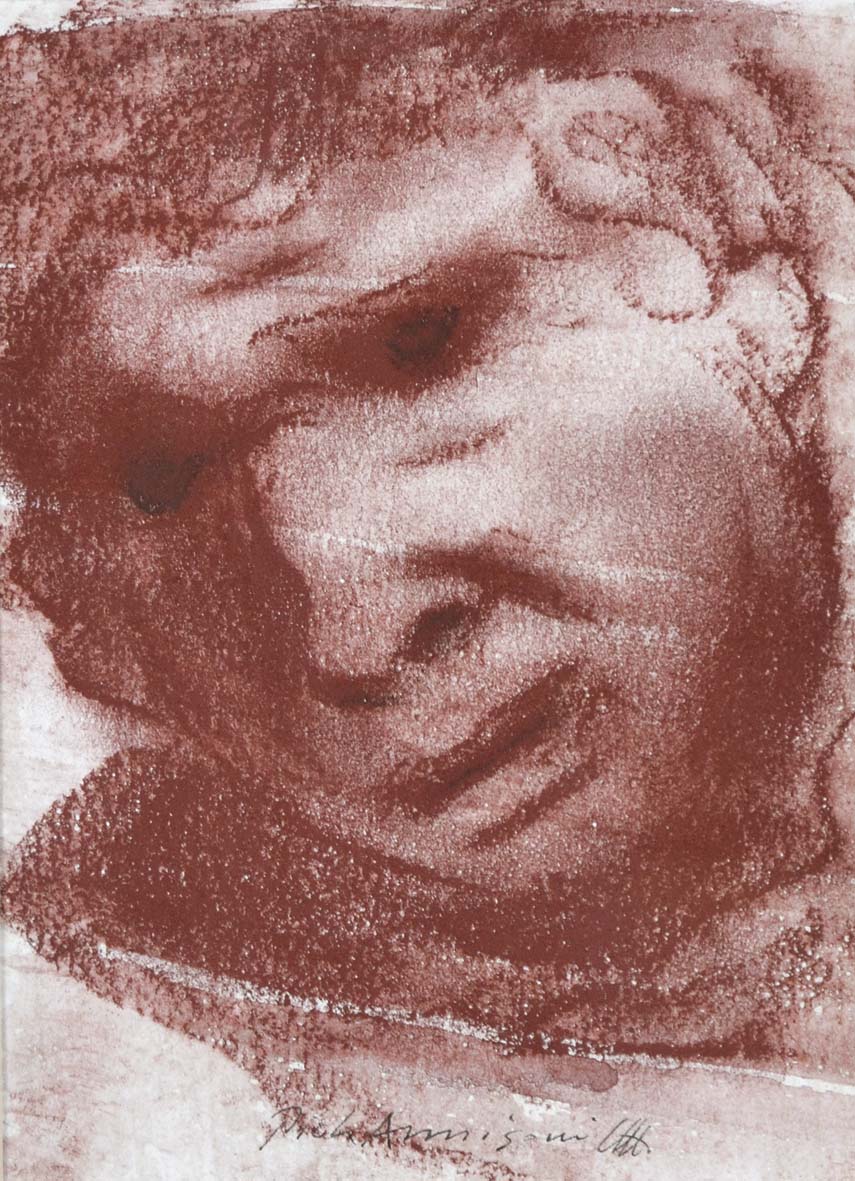 ANNIGONI PIETRO Milano 1910 - Firenze 1988 Volto disegno a sanguigna su carta 20x14 firma in basso al centro Autentica dell'Autore su foto
