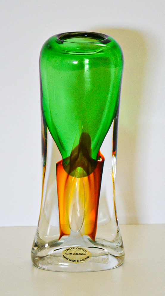 Vaso realizzato a mano da Adam Jablonski, opera unica realizzata con la particolare tecnica di fondere insieme vetro e metallo per creare un'opera altamente riflettente con una superba iridescenza.