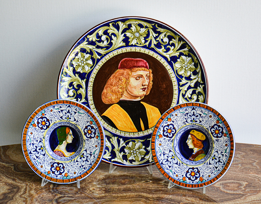 - Due piatti entrambi Ø 21 con mezzo busto e decoro rinascimentale.