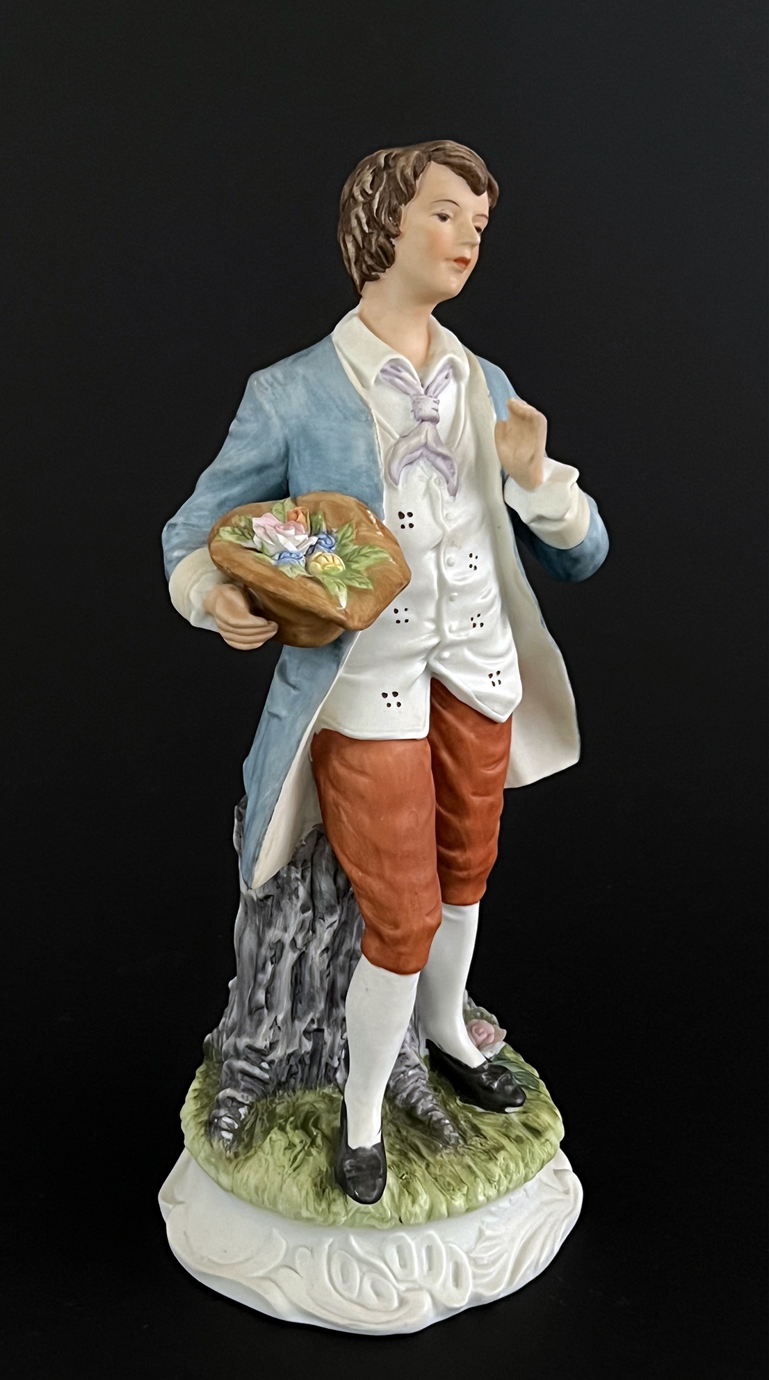 - Innamorato in abiti ottocenteschi in bisque policroma, sigillo della manifattura Capodimonte sul fondo