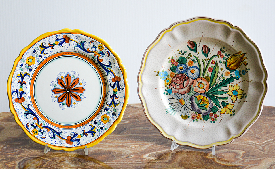 Lotto composto da n° 2 piatti in ceramica di Deruta in ceramica policroma dipinta a mano