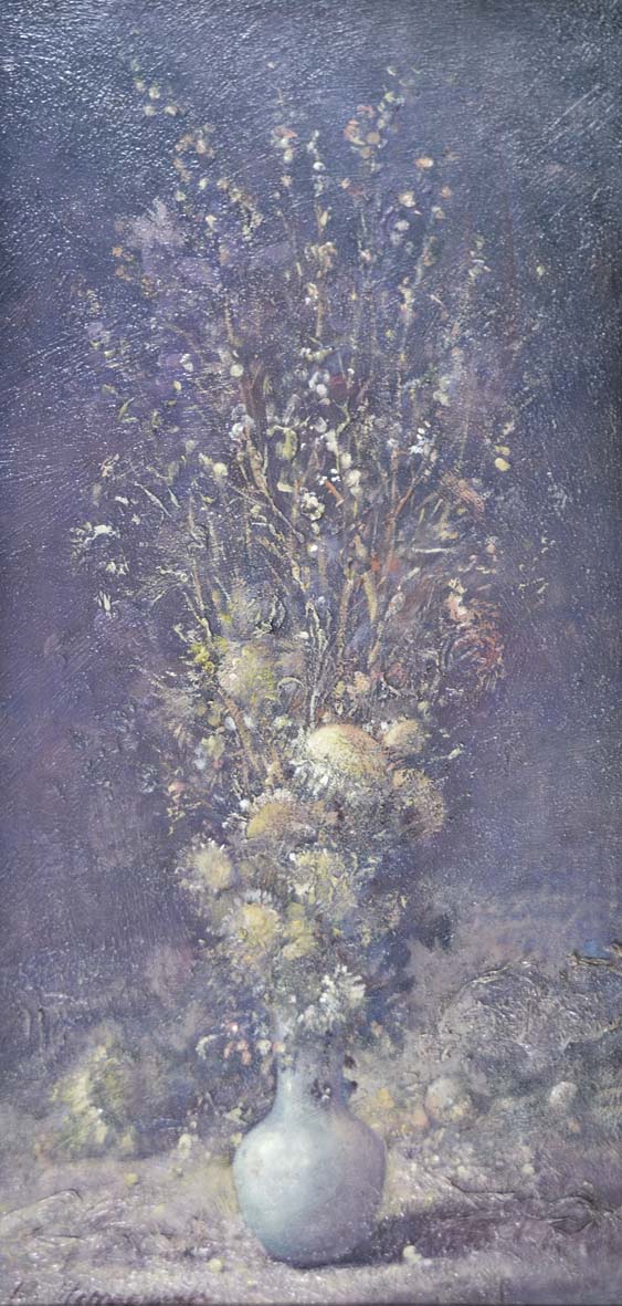 MASSAGRANDE MATTEO Padova 1959 Vaso di fiori olio su tavola 95x48 firma in basso a sinistra