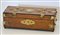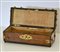 Piccolo bauletto in legno con finiture in ottone, all'interno si presenta come un scatola foderata in raso rosa.