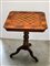 Tavolino quadrato con intarsio a scacchiera, arricchito da tarsie in materiale pregiato.