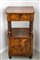 Comodino Luigi Filippo in legno impiallacciato in radica noce, basamento con anta retto da piedi torniti presenta alzatina con cassetto retta da quattro colonne tornite.