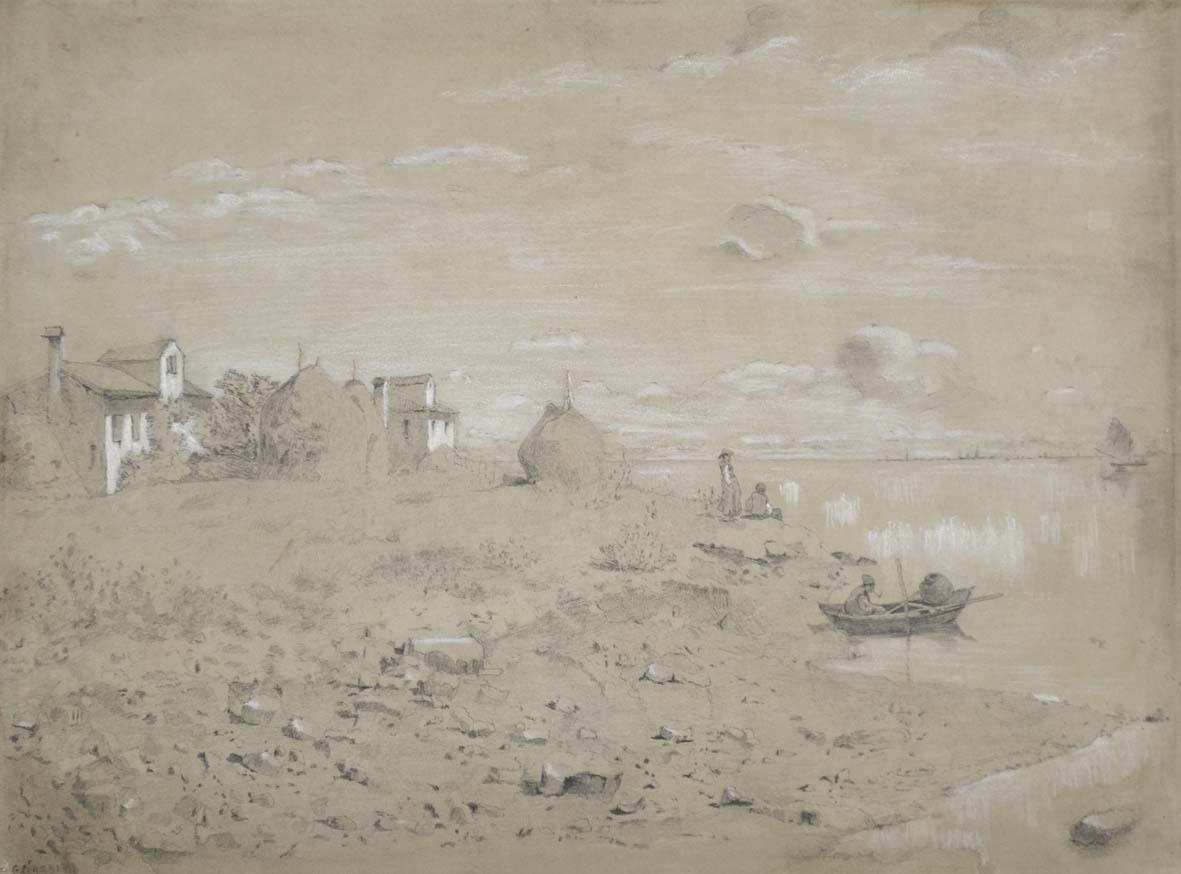 CIARDI GUGLIELMO Venezia 1842 - 1917 Paesaggio lagunare disegno a matita e biacca su carta 31x42 firma in basso a sinistra