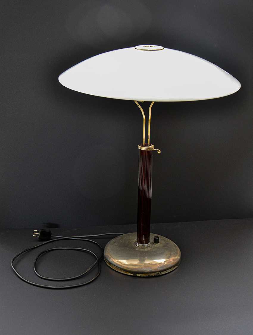 Lampada da tavolo VeArt modello Iskra designer Jeannot Cerutti anni ottanta in vetro opalino di Murano con base e sostegno in acciaio cromato.