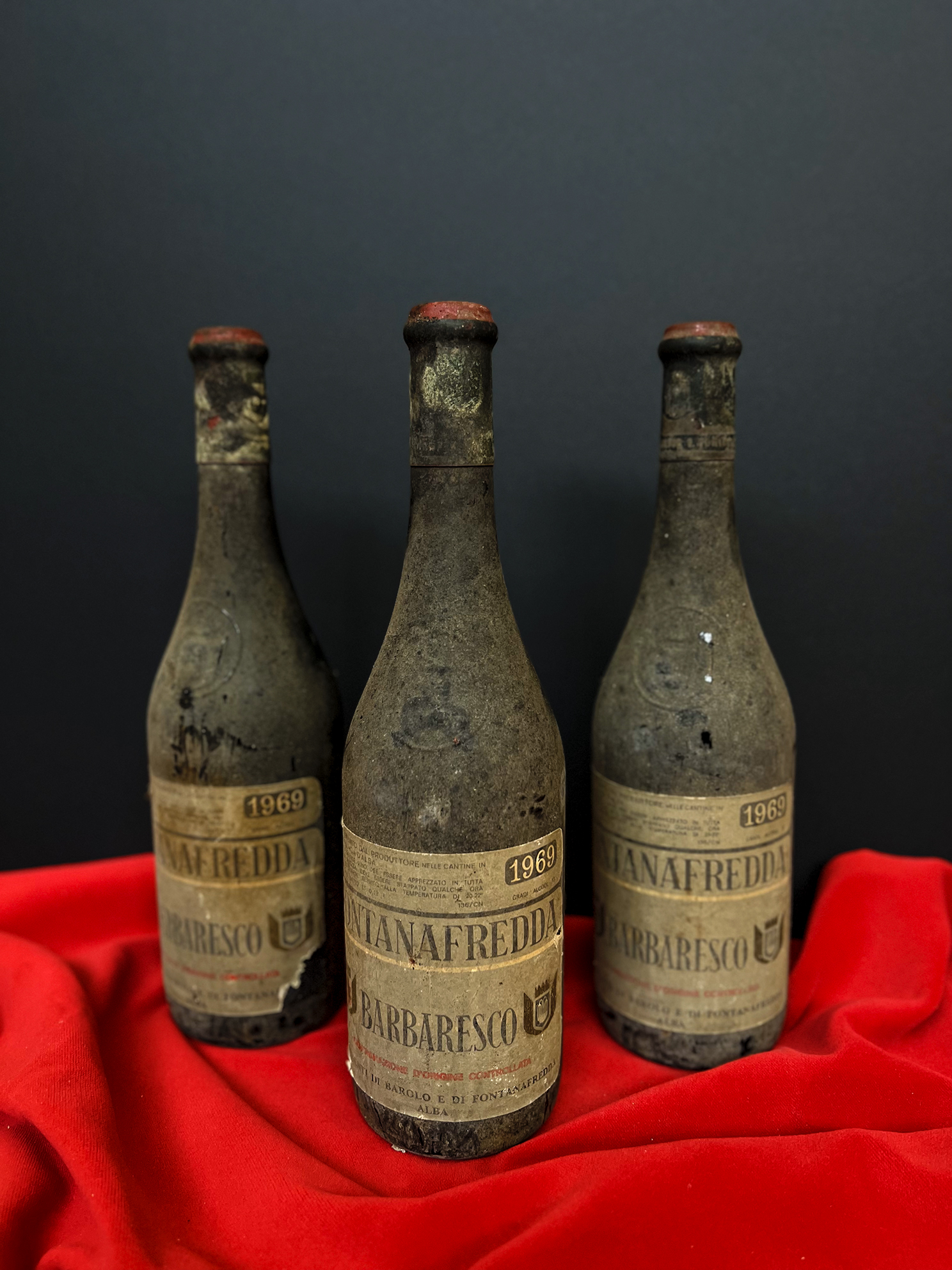 Lotto composto da n° 3 bottiglie di vino Barbaresco 1969 - Cantina Fontanafredda.