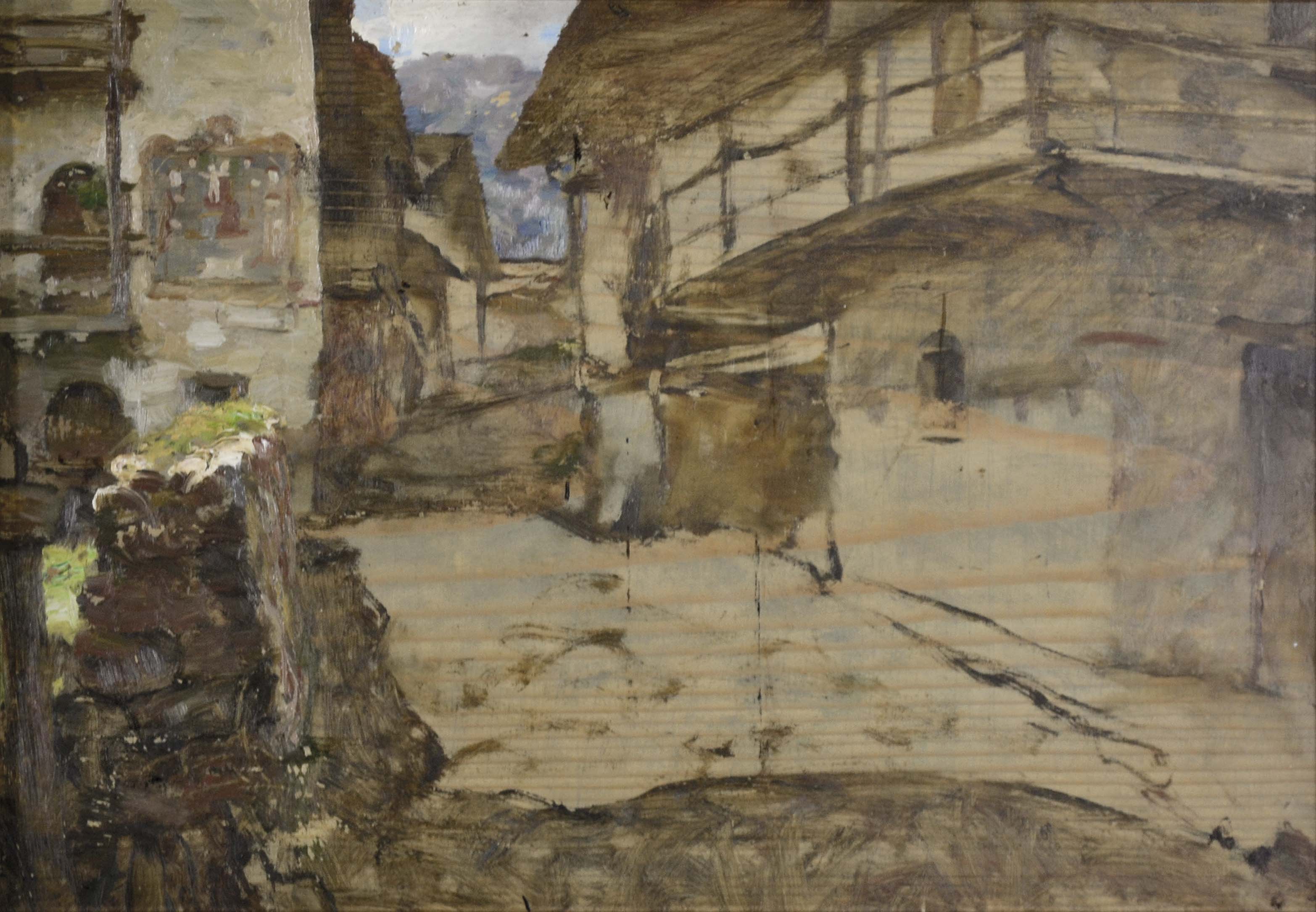 MAZZETTI EMO Treviso 1870 - Venezia 1955 Case in montagna olio su tavola 30x43 autentica del figlio Elio Mazzetti al retro