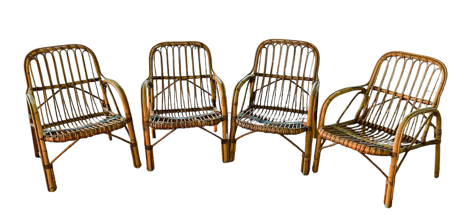 Lotto composto da n° 4 poltrone in vimini di manifattura italiana