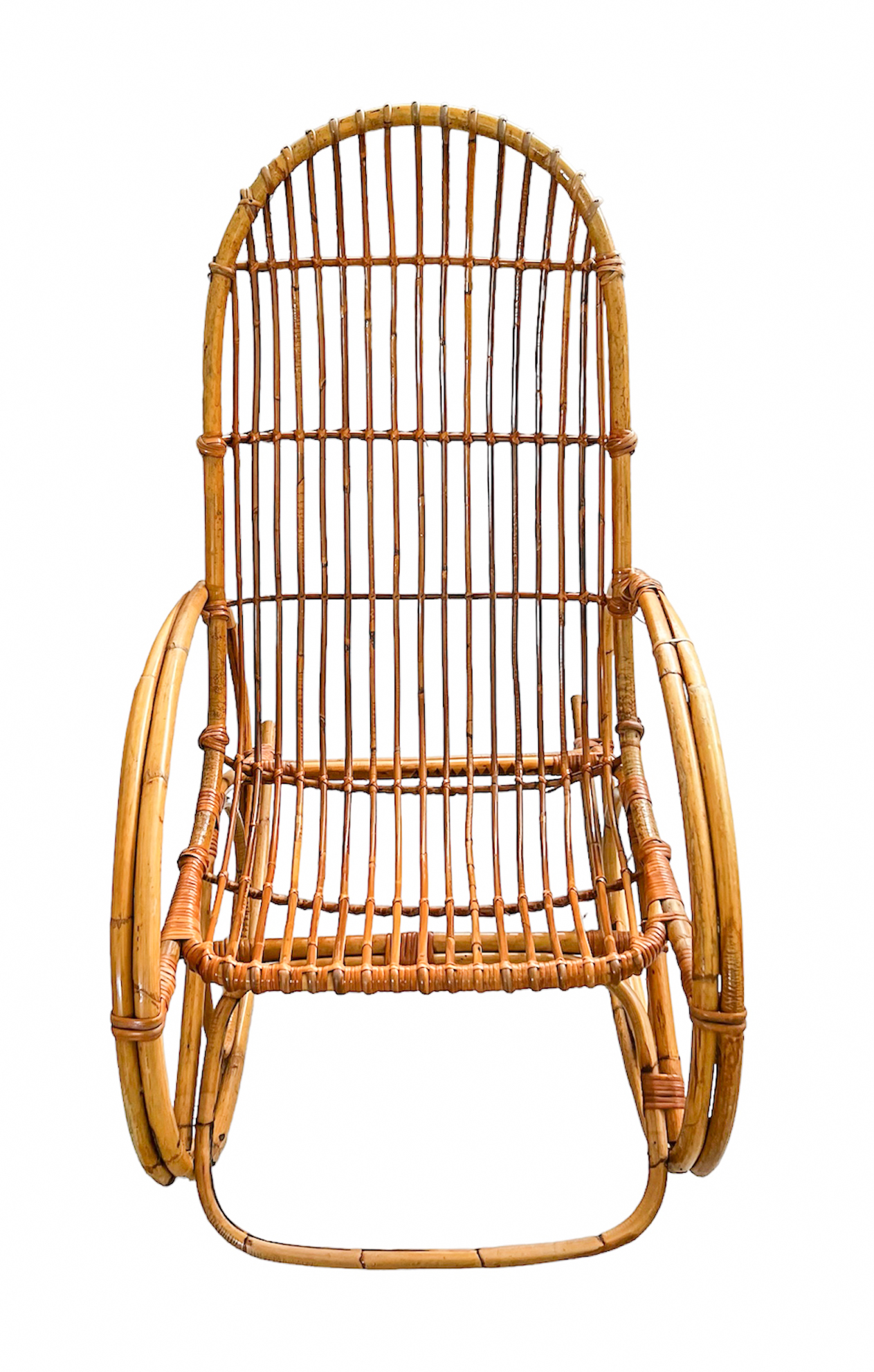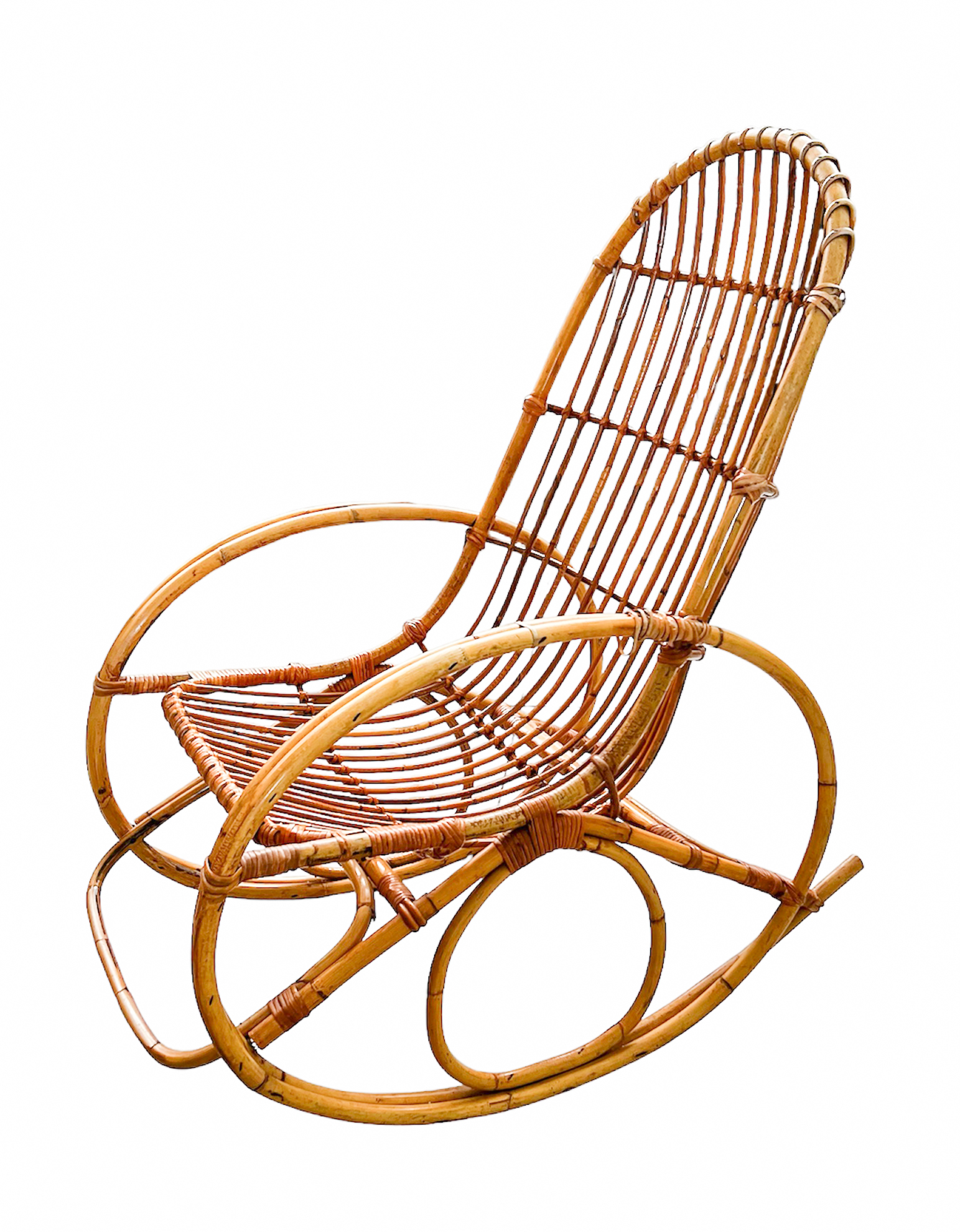 Sedia a dondolo con struttura in bamboo e rattan di manifattura italiana