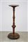 Piedistallo tornito con base circolare soretta da tre piedini tondi e piano tondo rastremato.