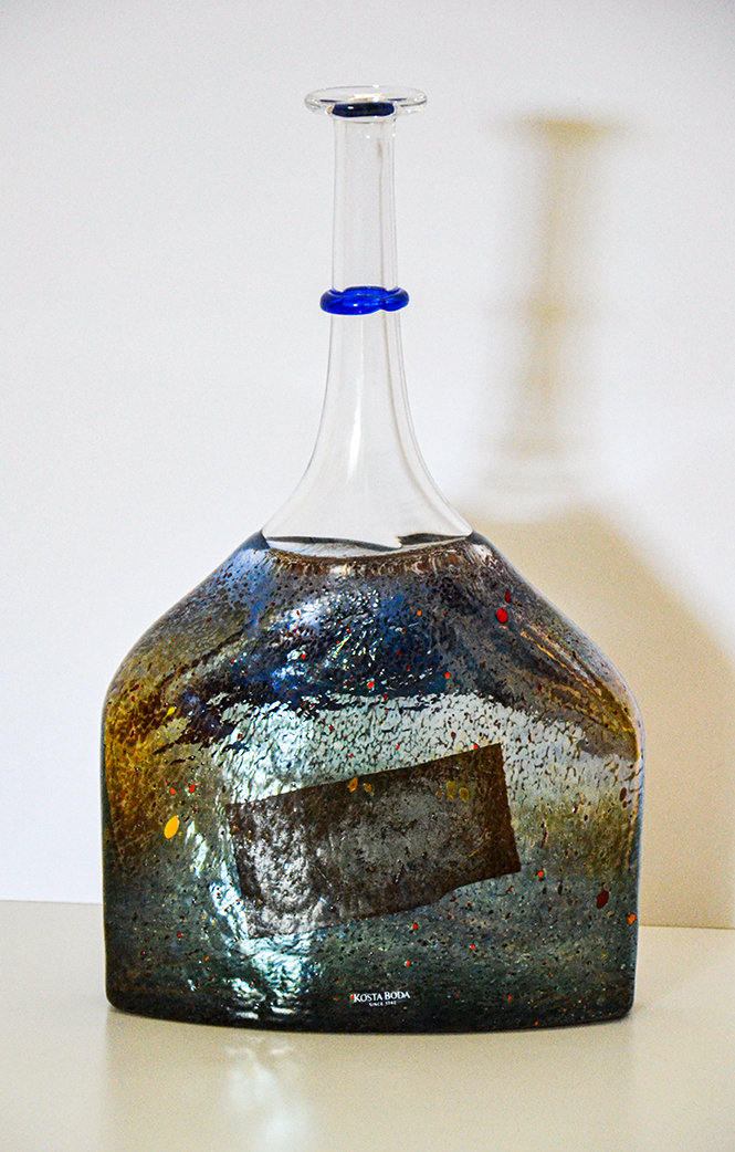 Bertil Vallien ha disegnato la serie Satellite per la vetreria Kosta Boda nel 1992, questa collezione si compone n° 28 oggetti dai colori forti con un decoro a chiazze.