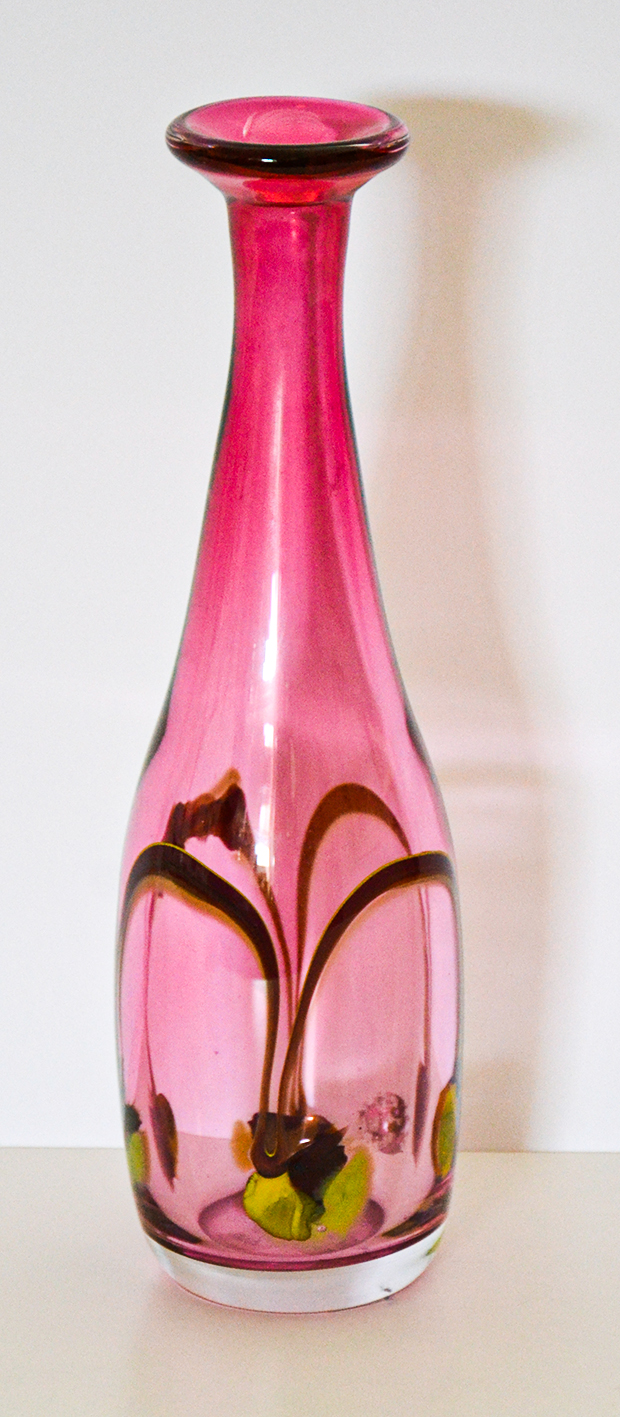 Vaso in cristallo soffiato realizzato a mano da Adam Jablonski, opera unica, realizzata con la particolare tecnica di fondere insieme vetro e metallo per creare un'opera altamente riflettente con una superba iridescenza.