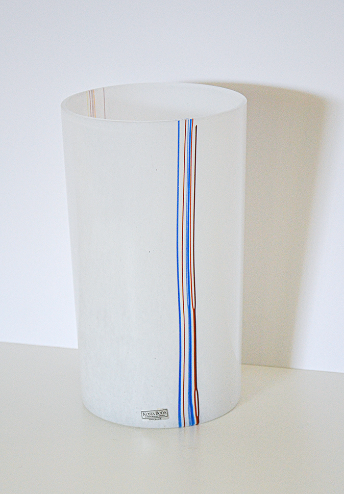 Bertil Vallien ha disegnato la serie Rainbow degli anni '80 per le vetrerie Kosta Boda, questa serie è caratterizzata da superficie bianca decorata con fili colorati ed è composta dacompone di undici vasi, due ciotole e da una lampada ad olio.