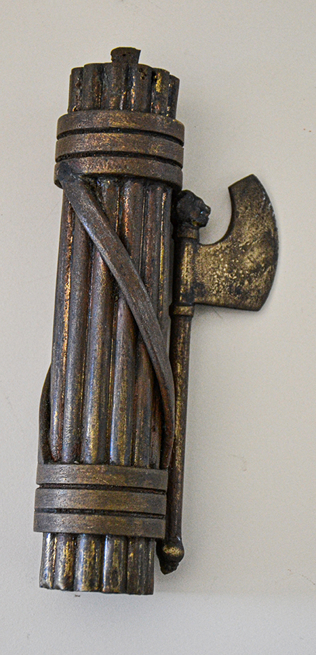 Puntale in bronzo di labaro fascista a fascio littorio imperiale