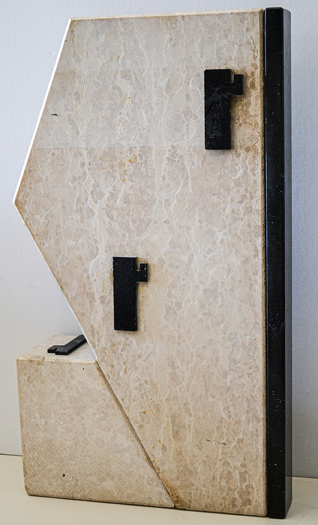 Al fronte e sul retro dell'opera sono presenti elementi bronzei che rappresentano il simbolo di forza fascista.