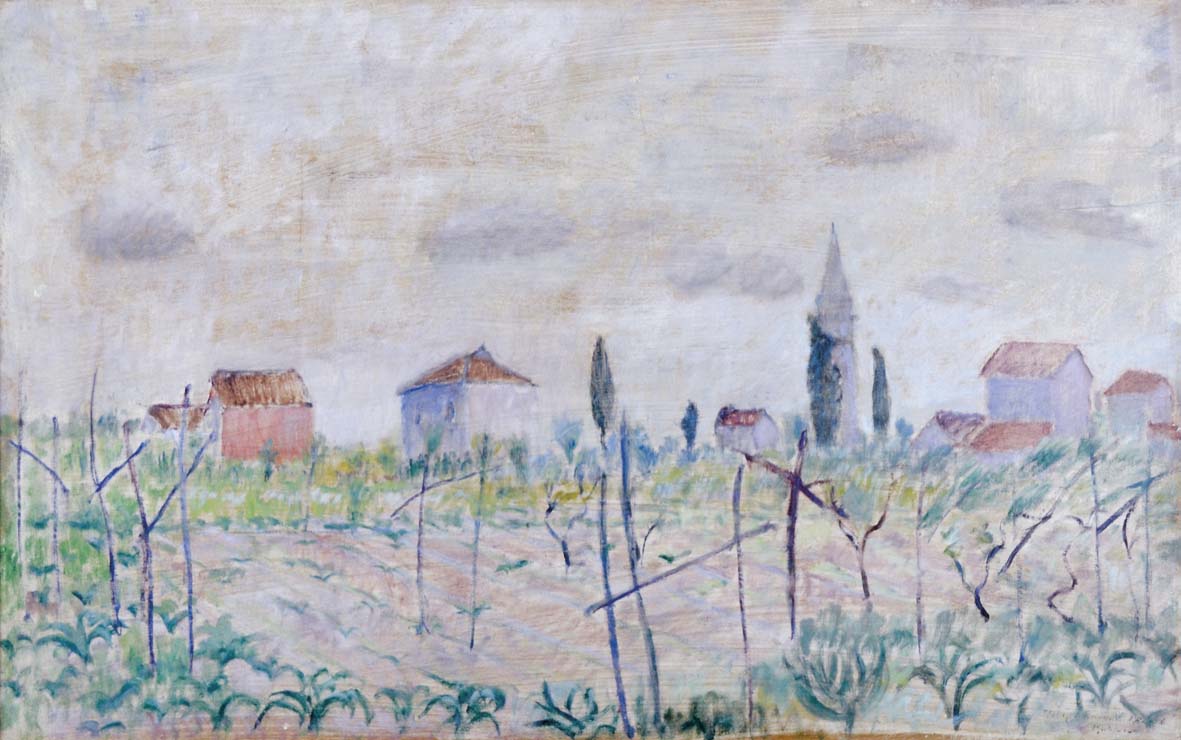 CANDIANI GIGI Mestre 1903 - 1963 Piovoso a Mazzorbo 1954 olio su tavola 50x80...