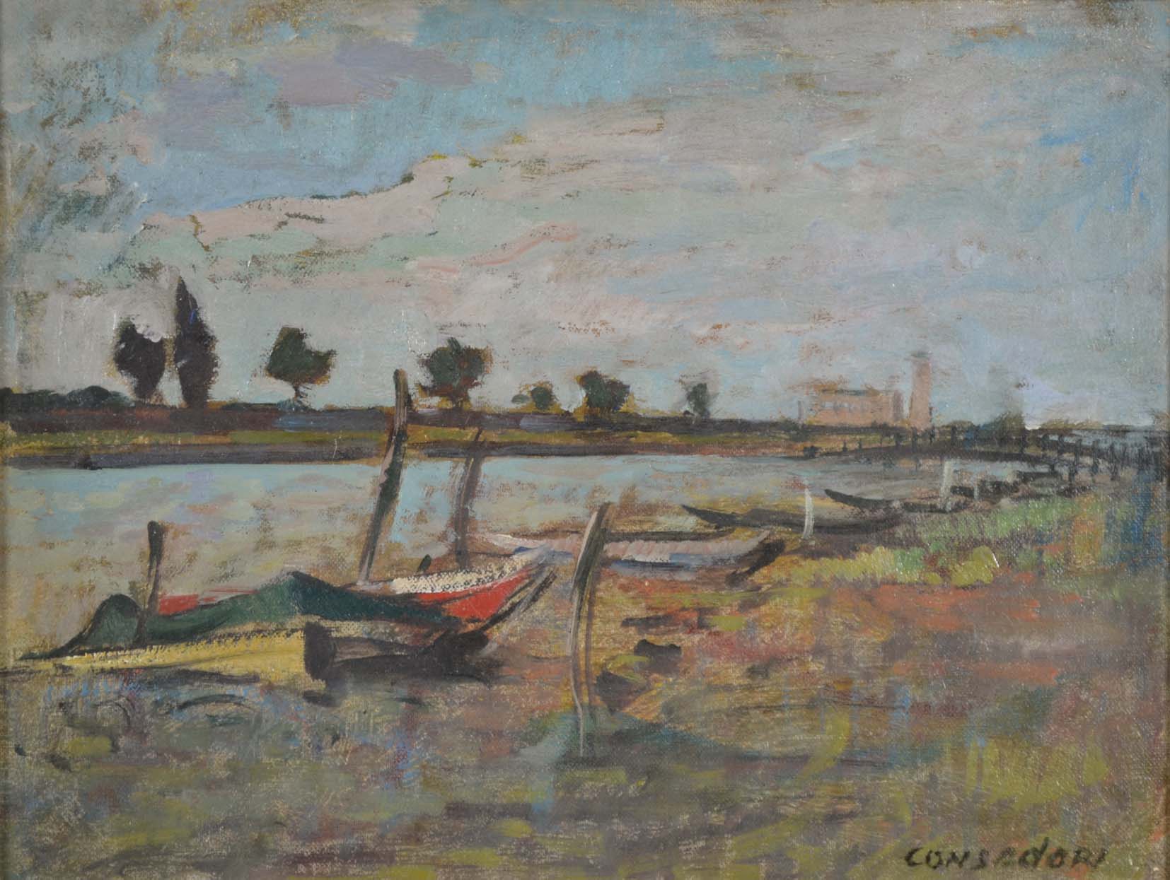 CONSADORI SILVIO Brescia 1909 - Milano 1994 Burano 1968 olio su cartone...