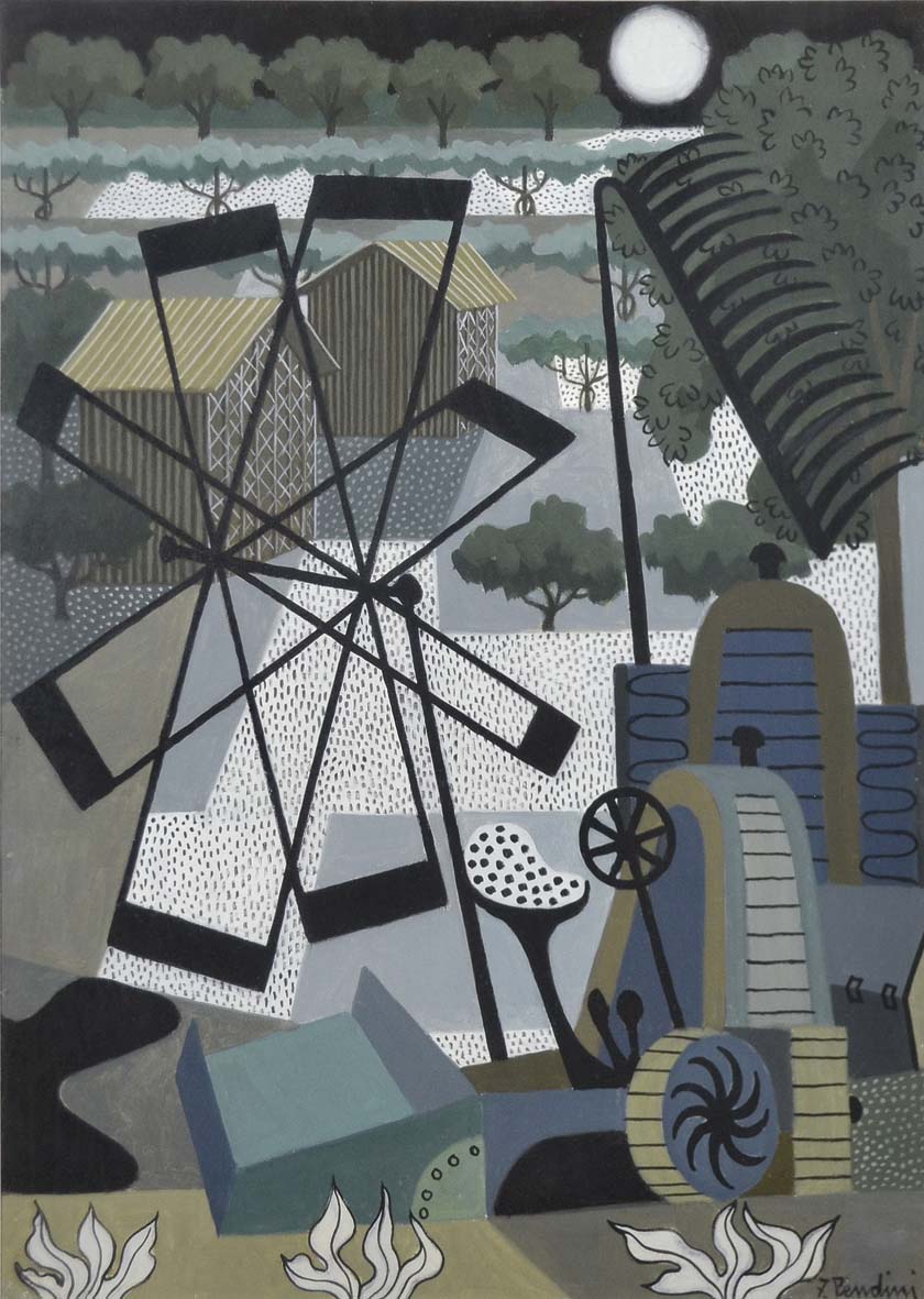 PENDINI FULVIO Padova 1908 - 1975 Macchine agricole 1962 olio su tela 70x50...