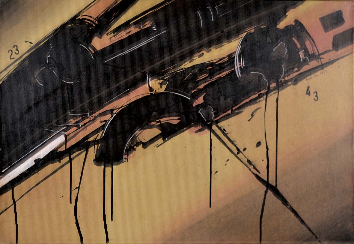 BERTINI GIANNI Pisa 1922 - Caen 2010 Au rendez-vous de cères 1959 tecnica mista su carta intelata 50x73 firma e data in alto a destra firma data e titolo al retro Esposizioni. Galleria l'Elefante Treviso - etichetta e timbri al retro