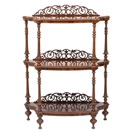 Cartiera Vittoriana a tre ripiani in legno e radica di noce.