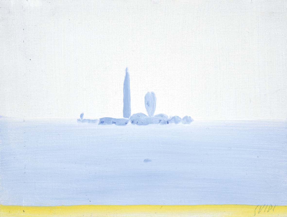 GUIDI VIRGILIO Roma 1892 - Venezia 1984 Marina di San Giorgio 1970-71 olio su tela 18x24 firma in basso a destra Autentica dell'Autore al retro e su foto, Archivio Storico Artisti Veneti nr. Rep. 03/14/N su foto Provenienza: Galleria Etruria Adria