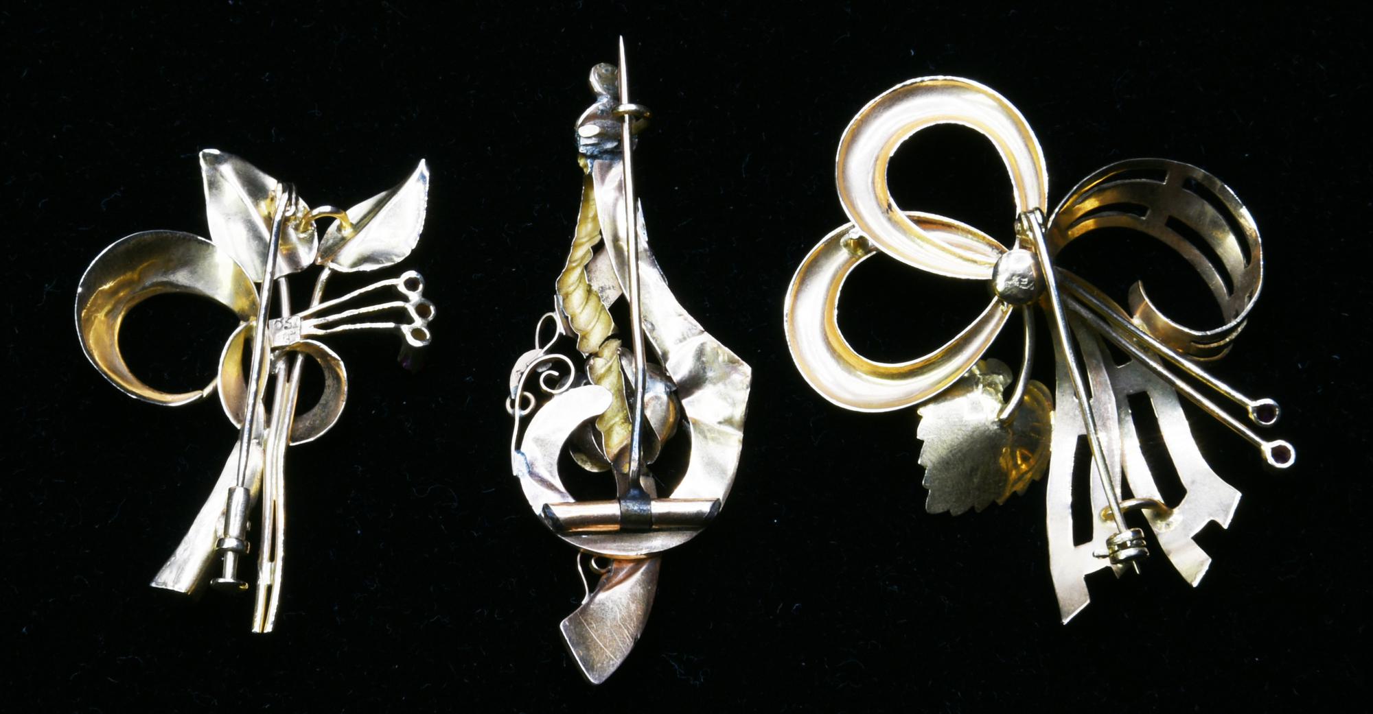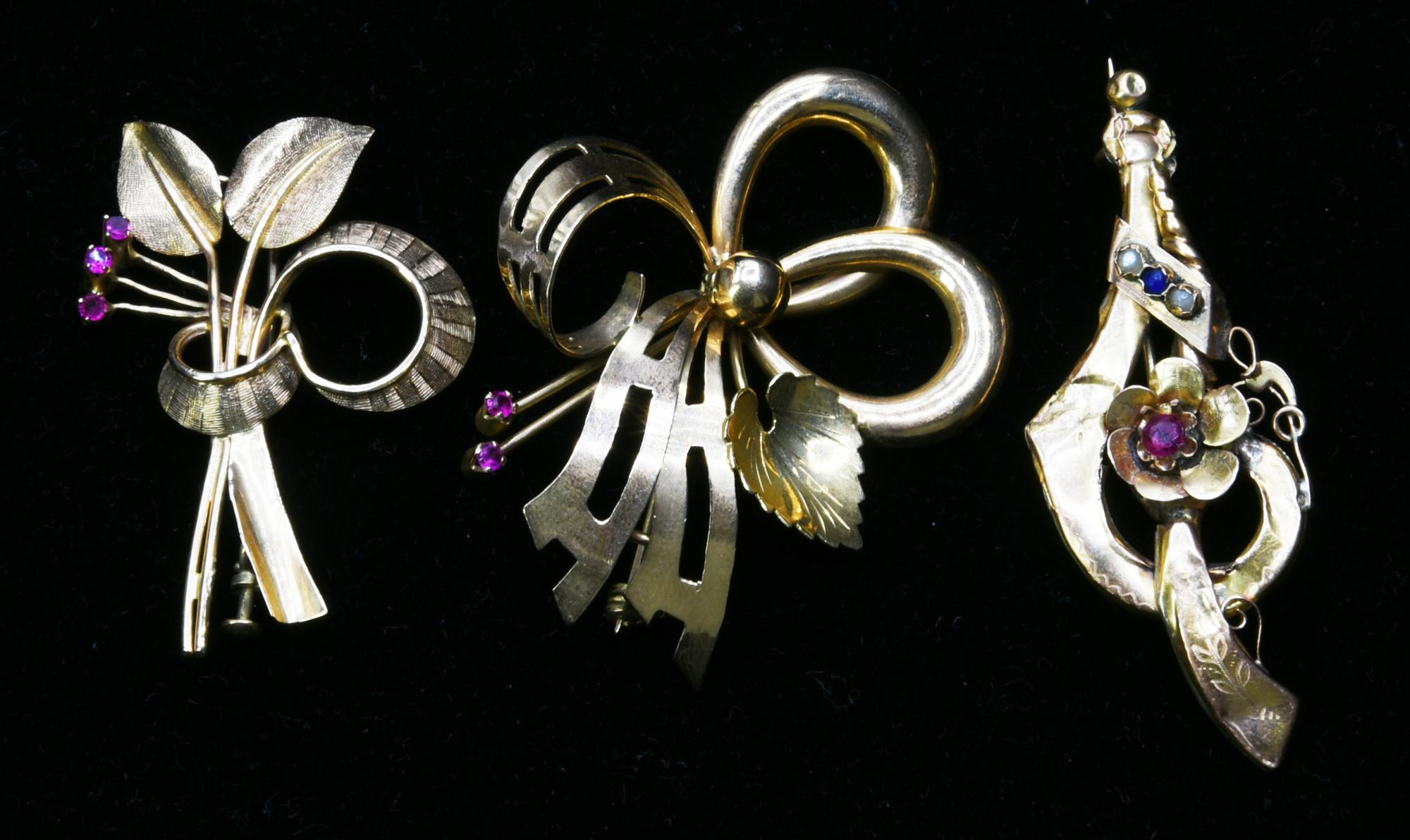 LOTTO DI TRE SPILLE IN ORO GIALLO