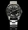 Quadrante nero opaco firmato "Omega Automatic Seamaster 300", indici rettangolari e trapezoidali luminescenti, scritta in basso T Swiss Made T. Lancette a daga luminescenti e secondi centrali.