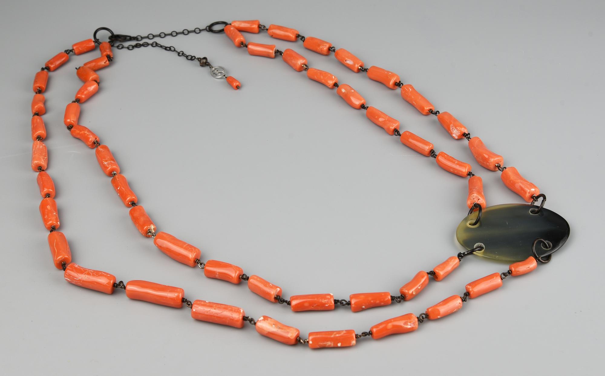 COLLANA CON CORALLO CERASUOLO E CORNO manifattura ROVIAN. Montatura in...