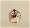 Anello in oro rosso e bianco 14kt con incastonato al centro un rubino ovale...