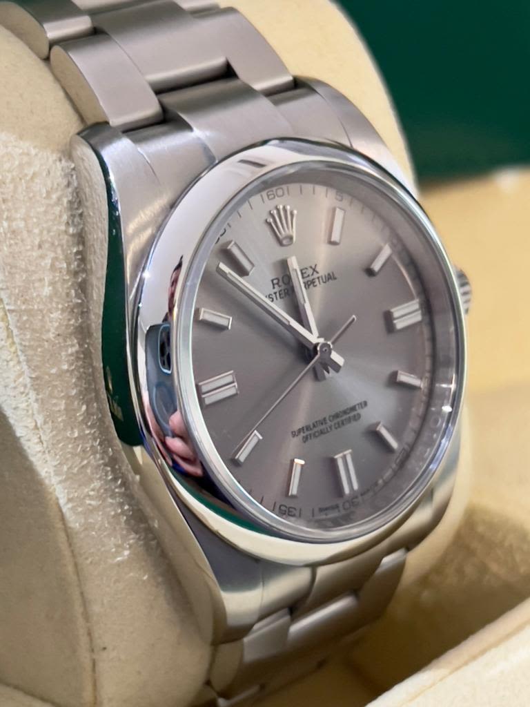 Marca Rolex Modello (Orologio) Oyster Perpetual 36 Numero di referenza 116000 Carica Automatico Materiale della cassa Acciaio Materiale cinturino Acciaio Anno di produzione 2015/19 Condizione ECCELLENTE Garanzia Rolex No box Automatico Cassa Materiale della cassa Acciaio Diametro 36 mm Impermeabile 10 ATM Materiale lunetta Acciaio Vetro Vetro zaffiro Quadrante Argento Numeri sul quadrante Arabi Cinturino Materiale cinturino Acciaio Colore cinturino Acciaio Chiusura Déployante Materiale chiusura Acciaio