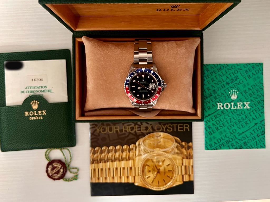 Marca Rolex Modello Gmt master Ref 16700 Anni 90 Cassa fori Cinturino oyster Garanzia Rolex Scatola di fornitura