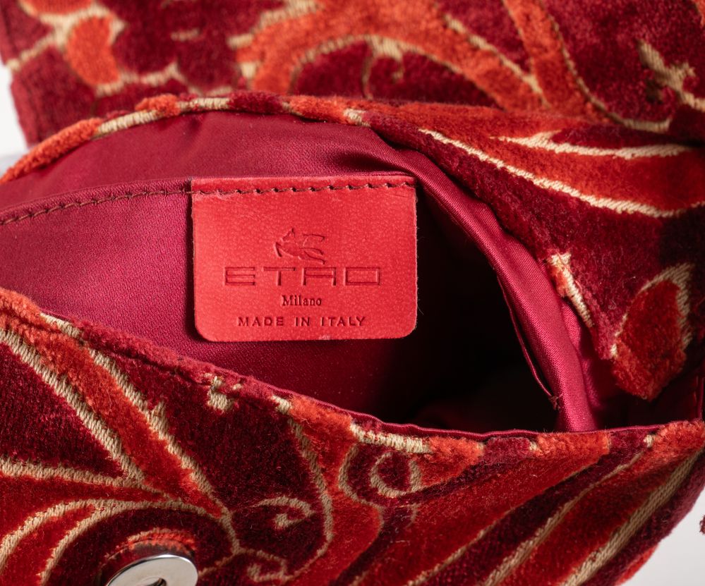 ETRO Borsa a tracolla in velluto a fantasia damascata sui toni del rosso e...