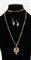 B&F Demi parure composta da luna collana a catena in metallo dorato e ciondolo a campanello e orecchini ad anella con campanelli. Applicazioni di pietre colorate e zirconi. Collana lunghezza cm 95; ciondolo cm 4,5x3. Orecchini cm 4,5x1,5. La collana reca marchio B&F.