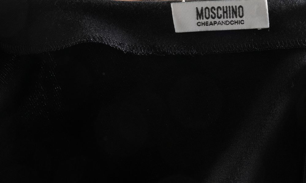 MOSCHINO Cheap and Chic Vestito nero con un fiocco applicato. Anno 2013. Taglia IT 44. Reca etichetta Moschino Cheap and Chic.