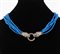 Collana a cinque fili di perline blu e argento con chiusura a forma di felino...