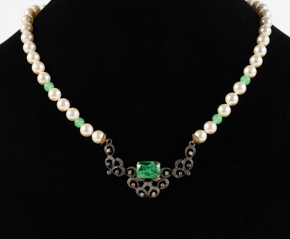 Collana di perle e pietre verdi con dettagli e chiusura in argento 925 con...
