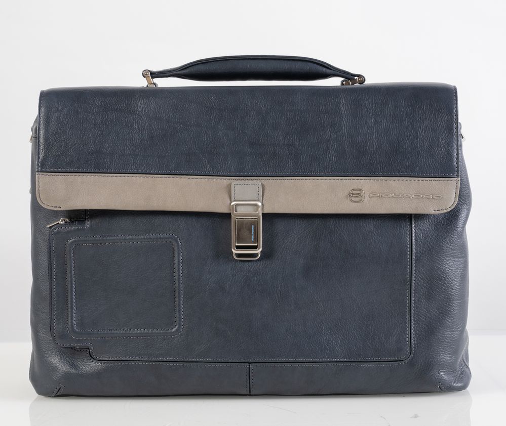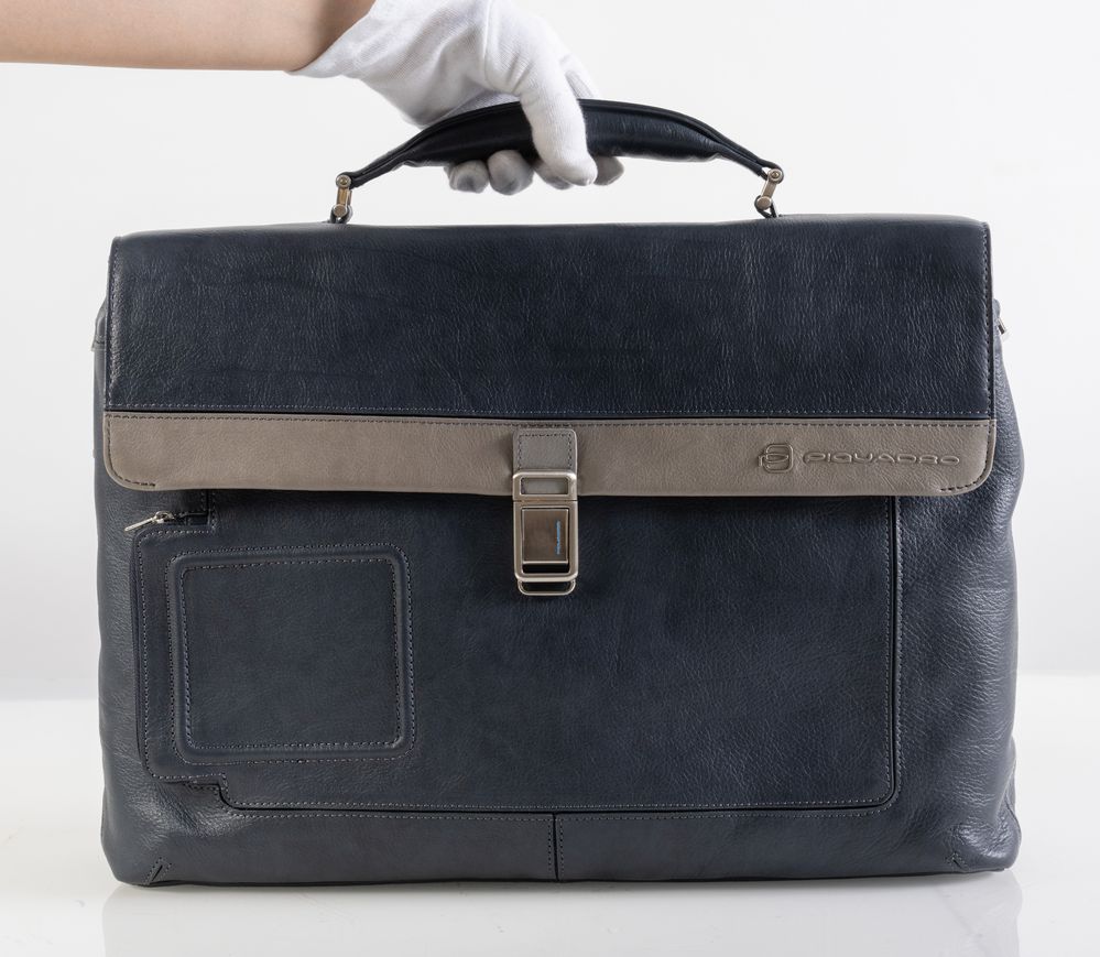 PIQUADRO Borsa a cartella modello Vibe in pelle blu. Cm 30x43x12. Reca...
