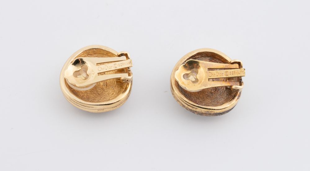 CHRISTIAN DIOR Orecchini a clip in metallo dorato con pietra cabochon cui...
