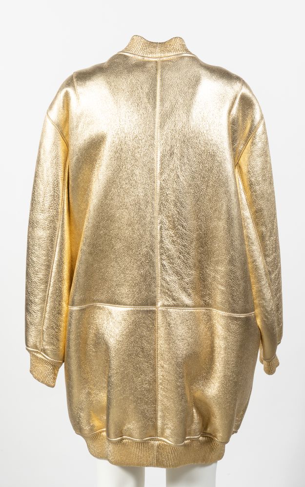 MOSCHINO Cheap and Chic Bomber lungo in montone color oro con tasche.