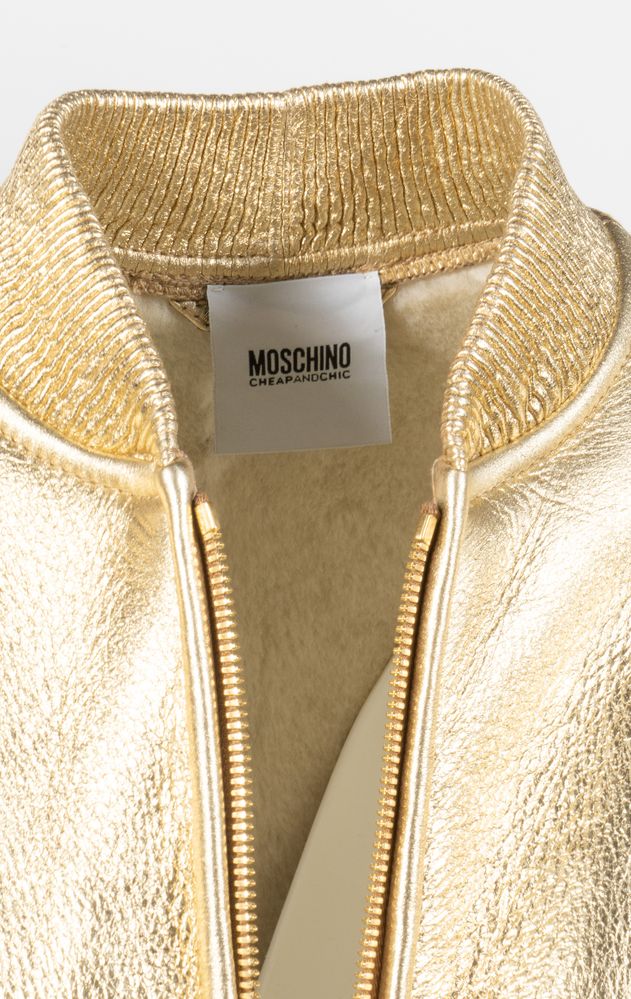 MOSCHINO Cheap and Chic Bomber lungo in montone color oro con tasche....