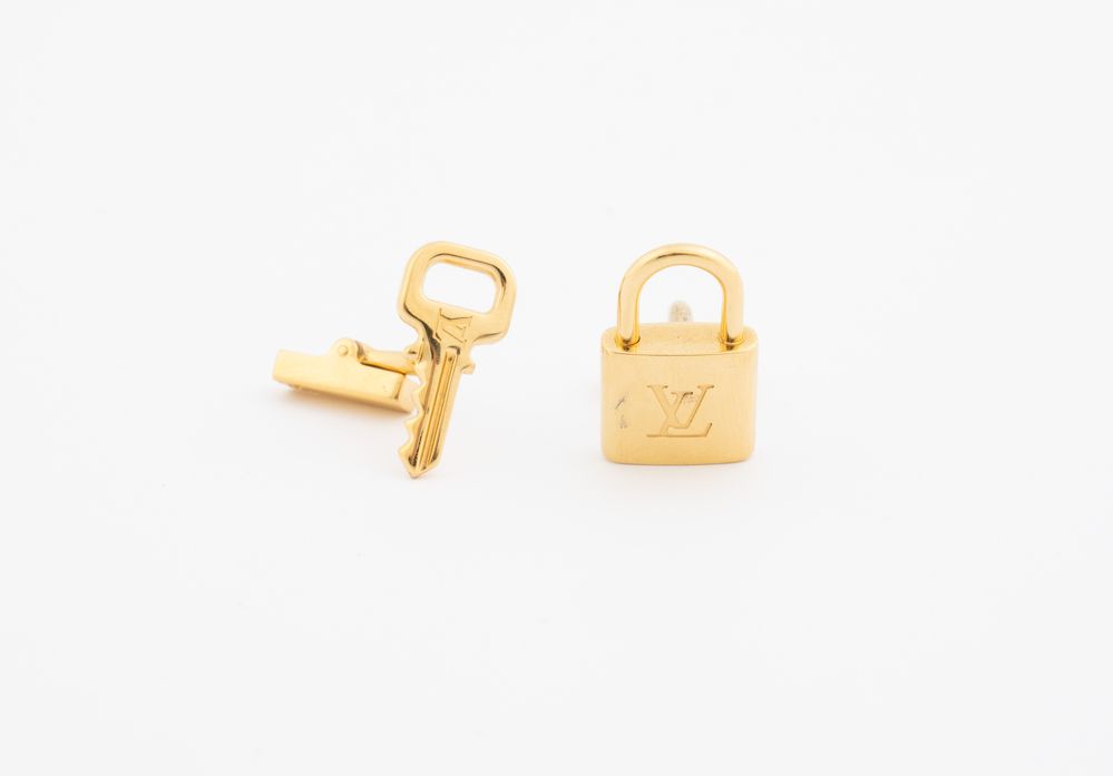 LOUIS VUITTON Gemelli in argento 925 placcato oro con chiave e lucchetto....