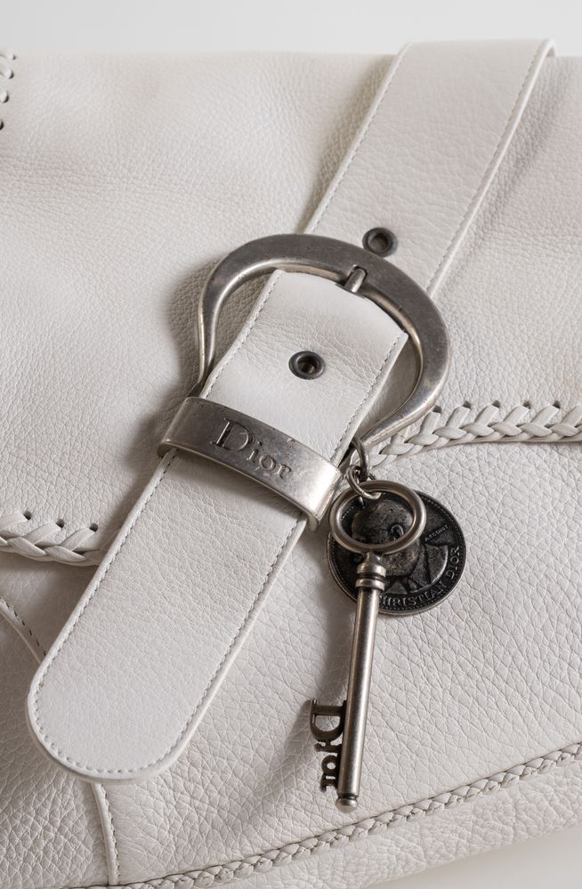 CHRISTIAN DIOR Borsa modello Gaucho Double Saddle in pelle martellata bianca....