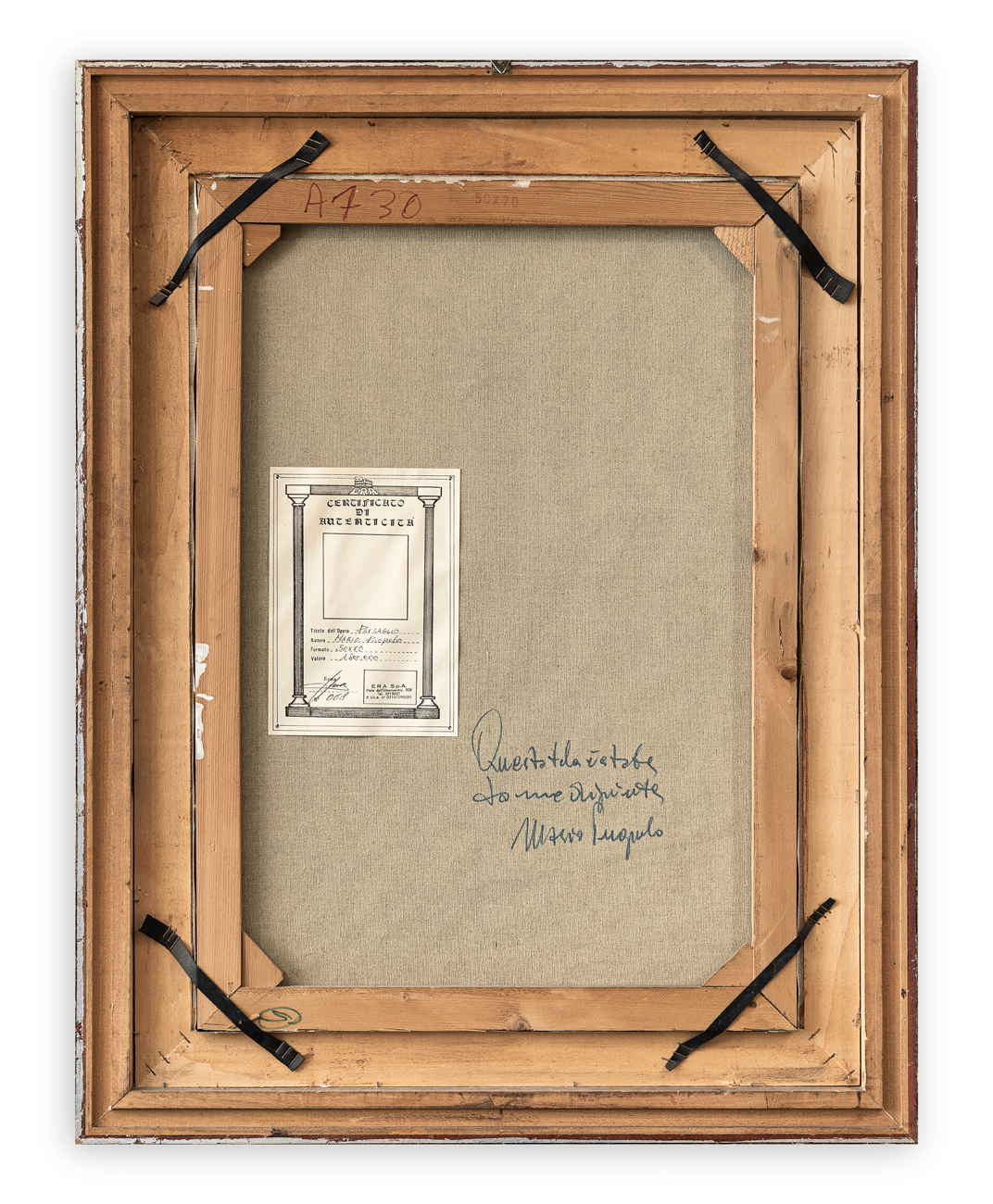 Firma e dichiarazione di autenticità dell'Artista al retro
