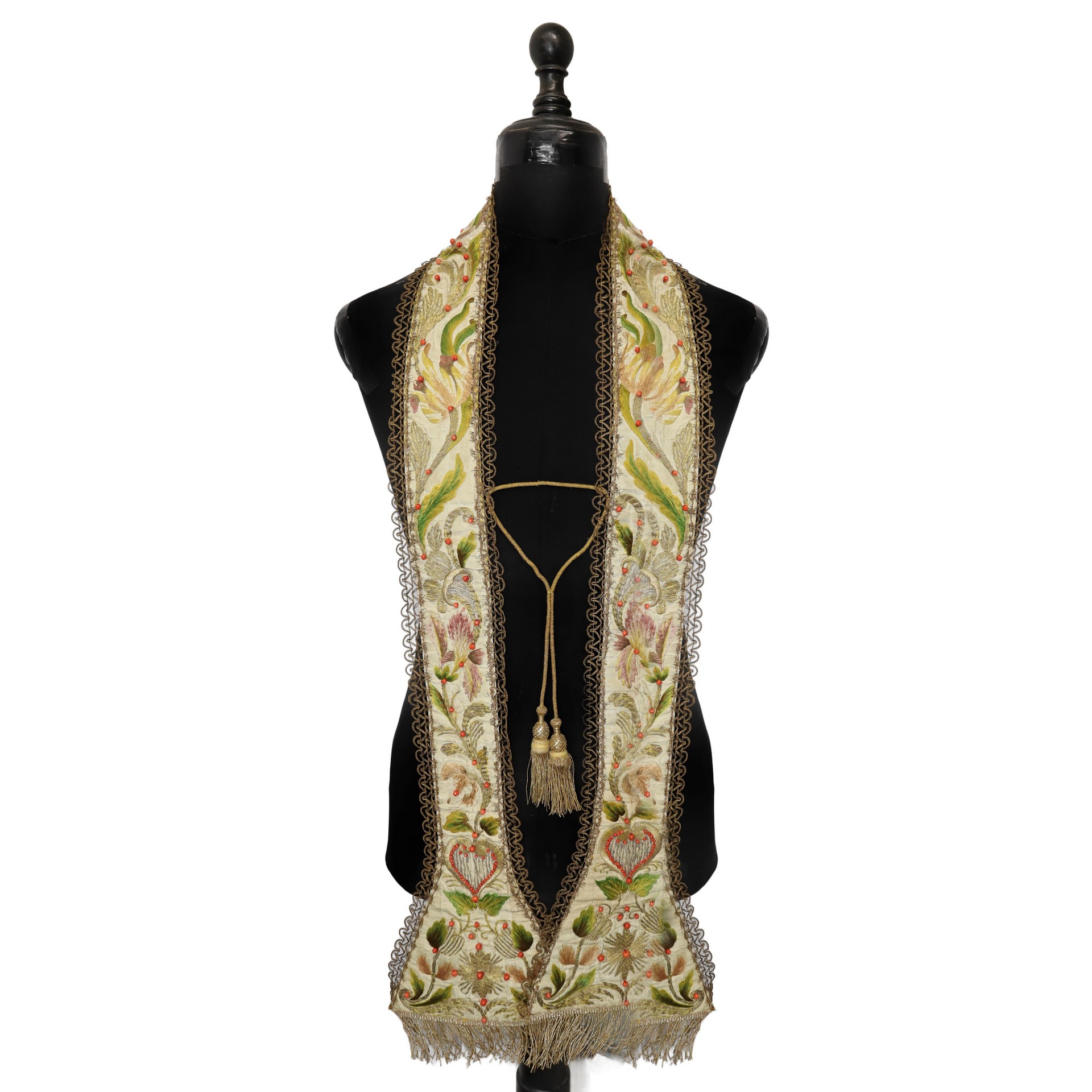 Stola con ricami in seta e oro e coralli di Trapani, Early 18 century