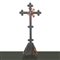 Crocifisso legno con piedistallo, lastronato in madreperla decorata a bulino con figure sacre, XVIII century
