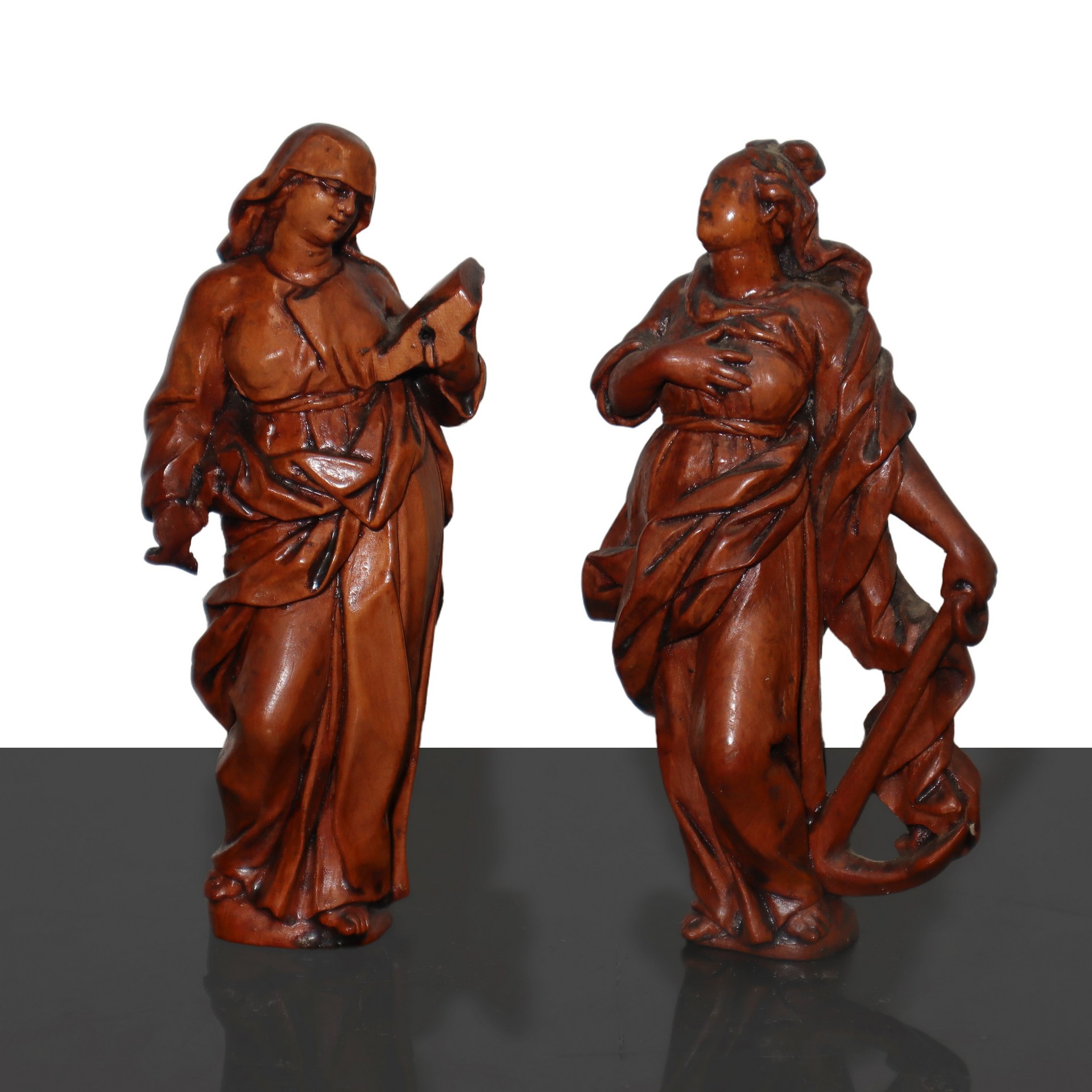 Coppia di sculture lignee raffiguranti Santi, XVIII Secolo H cm 13