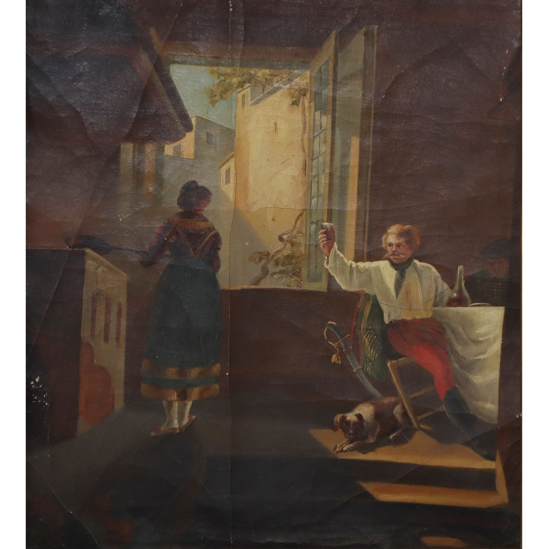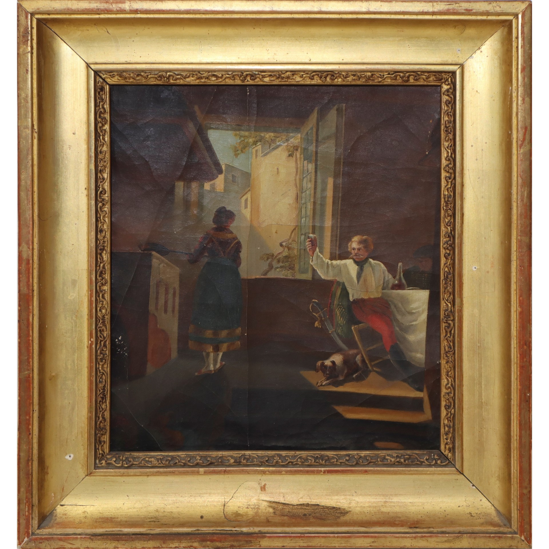 Precedente Lotto 30 Successivo Art La Rosa Casa d'Aste - Viale Africa 12, 95129 CATANIA Asta Eclettica #71 Asta Eclettica #71 giovedì 27 luglio 2023 ore 16:30 (UTC +01:00) Interno con personaggi Interno con personaggi cm 30x28, in cornice 35x33 Olio su tela