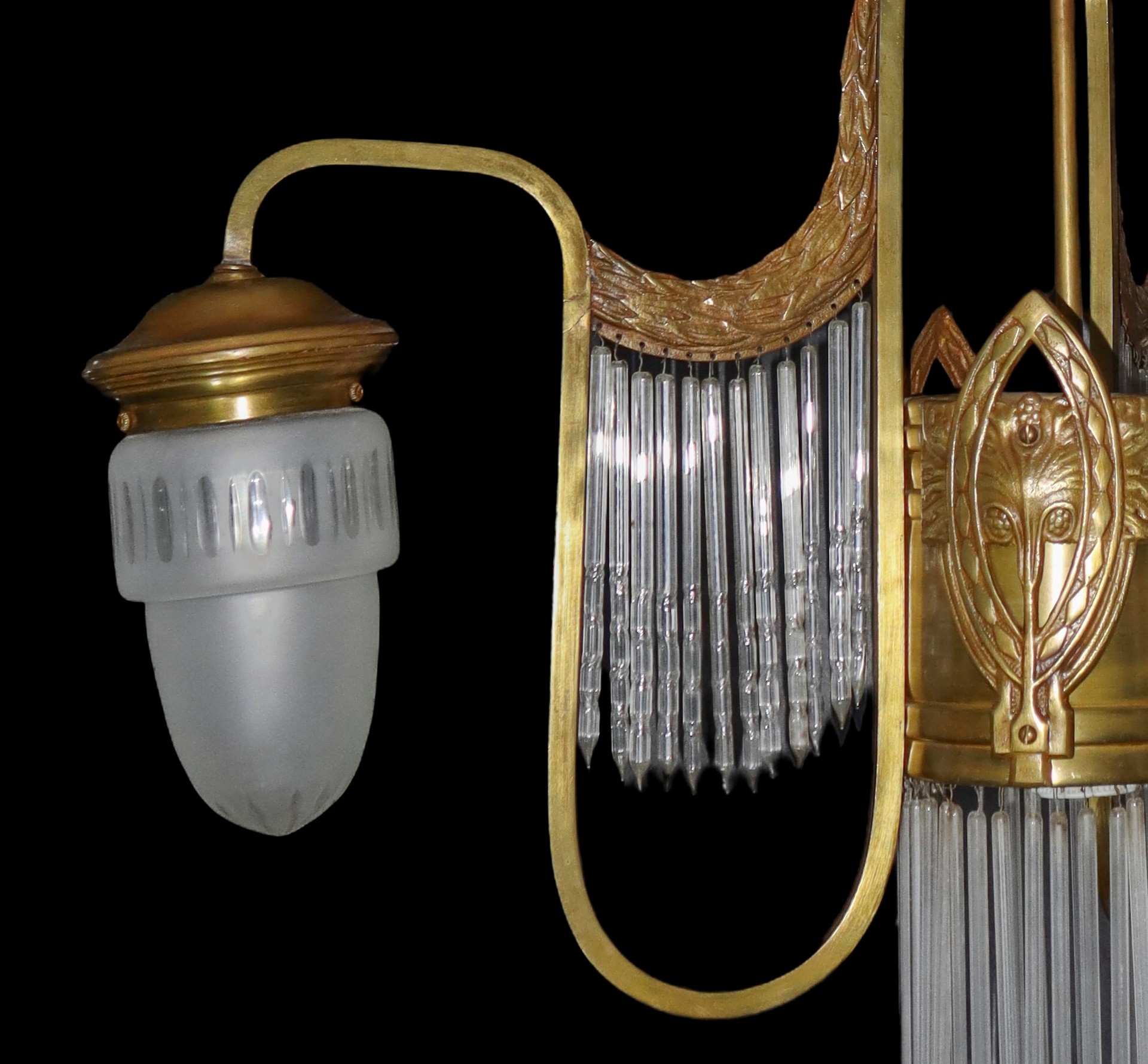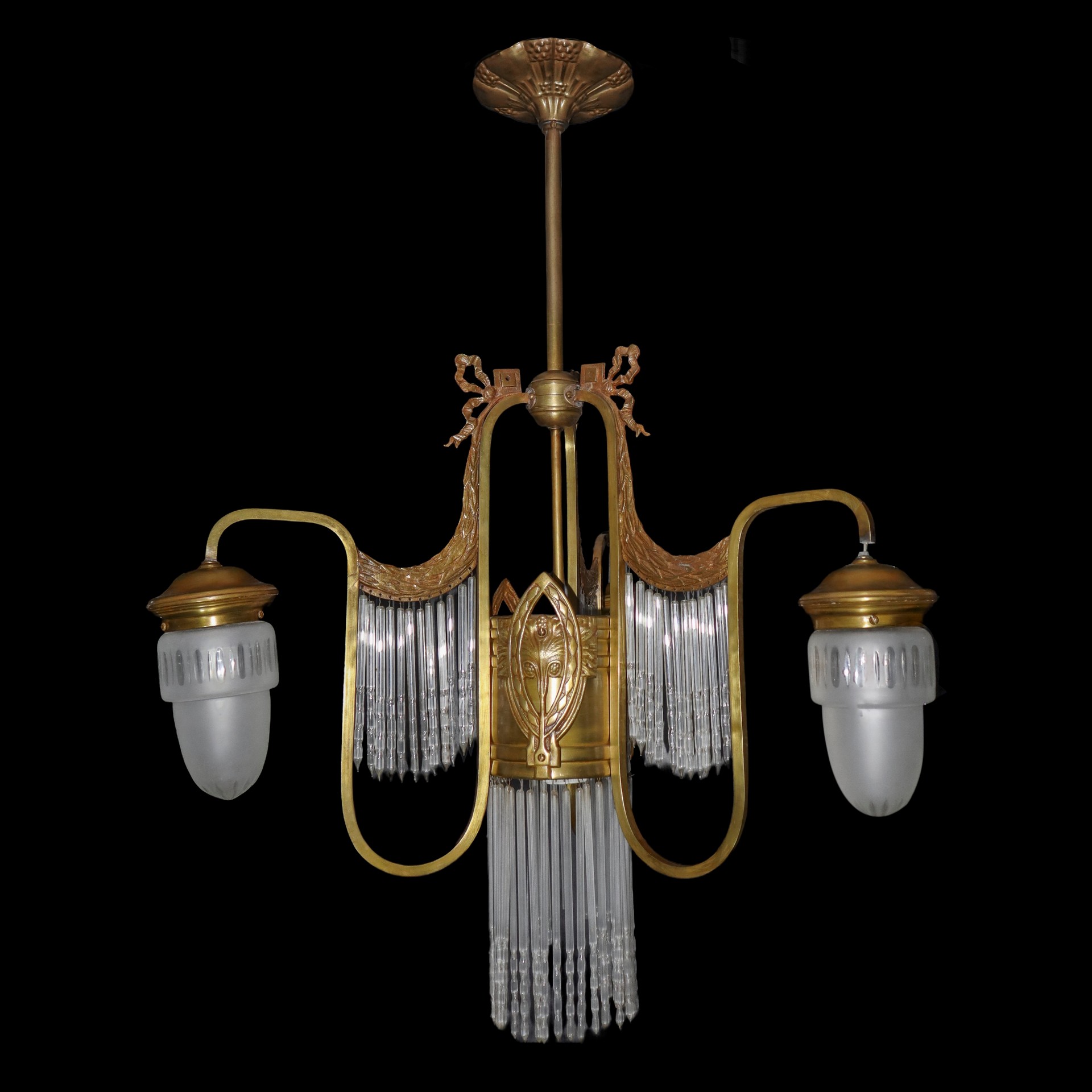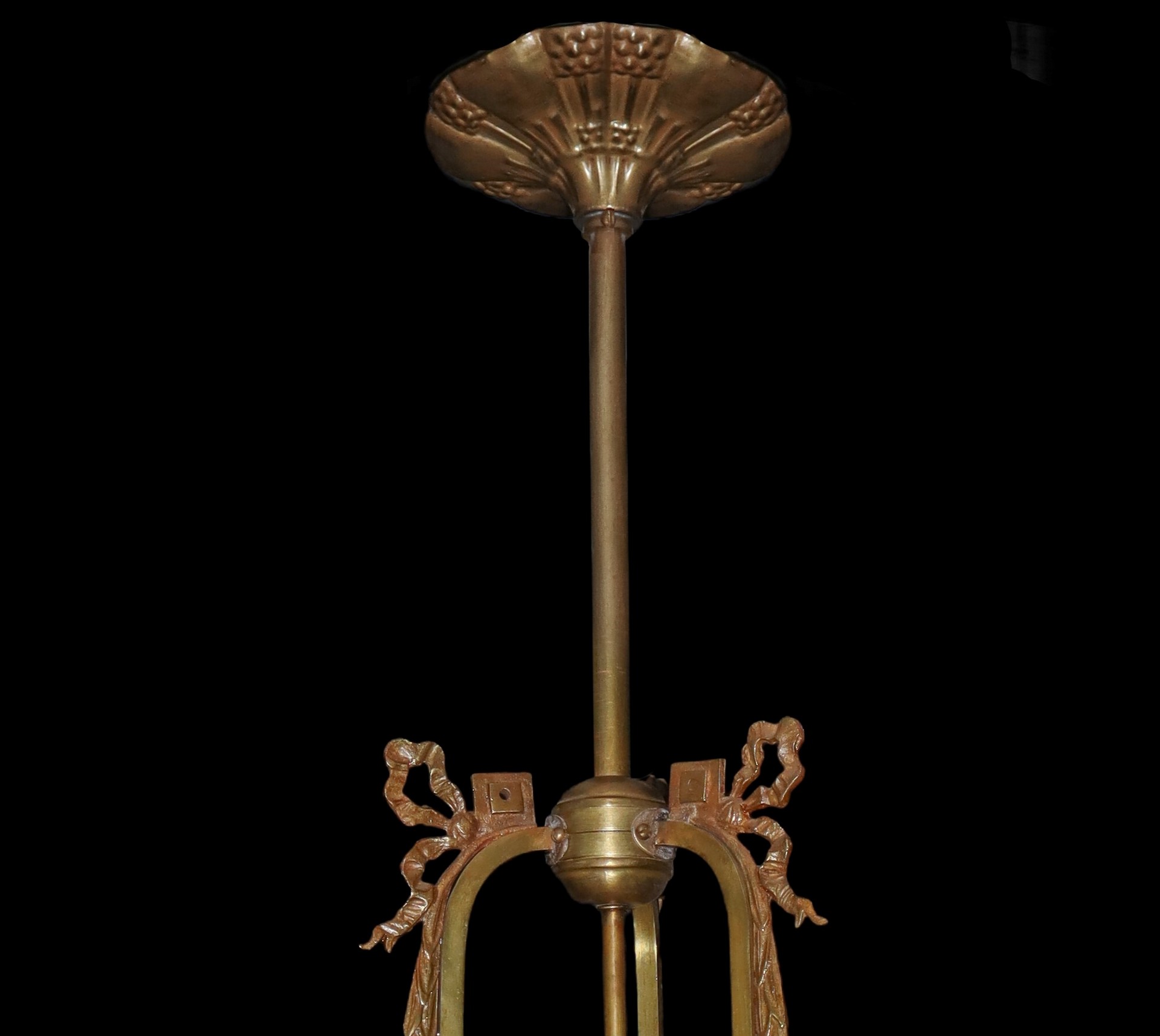 Lotto 37 | Lampadario Liberty, a tre bracci con vetri, struttura dorata., Early 20 century